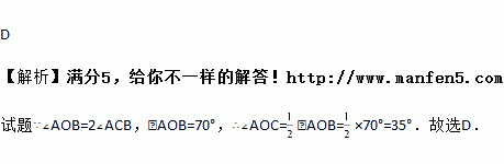 如图,A,B,C是⊙O上的三个点,若∠C=35°,则∠AOB的度数为( )
