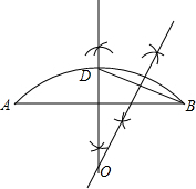 分析:连接AB,作AB的垂直平分线CD,交AB于点C,交弧于点D,连接BD,再作BD的垂直平分线,两垂直平分线的交点就是圆心O.