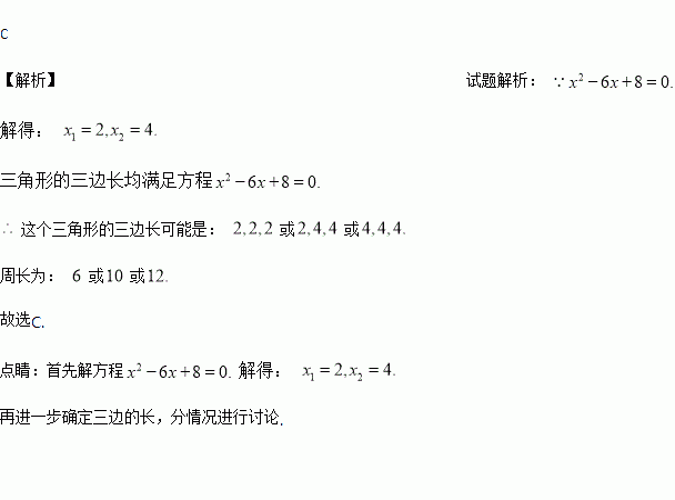 若一个三角形的三边长均满足方程x2﹣6x+8=0,则此三角形的周长为( )
