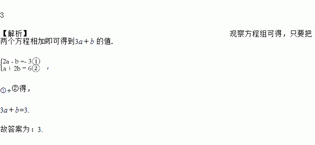 已知a,b满足方程组,则3a+b 的值为____________;
