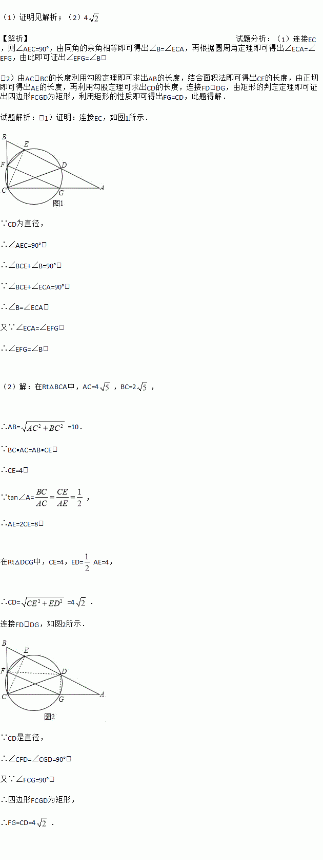 (2)若AC=2BC=4,D为AE的中点,求FG的长.