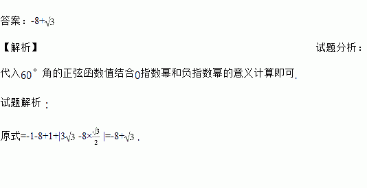 计算(-1)2011-()-3+(cos68°+)0+|3-8sin60°|;