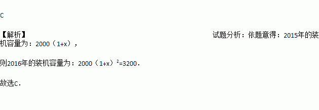2014年底,我国核电装机容量大约为2000万千瓦,到2016年底我国核电装机容量将达到约3200万千瓦.若设平均每年的增长率为x,则可列方程为( )
