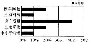 在每周一次的县长接待日中,各种问题都有所反映,一个月后进行统计发现,有下列一张统计图,则在这一个月内接待了300人次时,反映中小学收费的有________人,反映土地审批的有________人,反映房产质量的有________人,反映婚姻纠纷的有________人,反映停车问题的有________人.