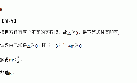 关于x的一元二次方程有两个不相等的实数根,则实数m的取值范围为( )