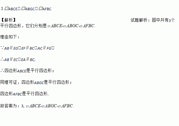 如图,AB∥EG,EF∥BC,AC∥FG,图中有_______个平行四边形,它们分别是____________.