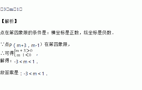 在平面直角坐标系中,若点P(m+3,m﹣1)在第四象限,则m的取值范围为_____.