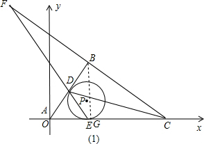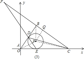 (4)当⊙P与△ABC内切时,⊙P与边BC相切于G点,请写出切点D、E、G的坐标(不必写出计算过程).