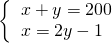 解答:根据东风旅行社组织200人到花果山和云水洞旅游,得方程为x+y=200;