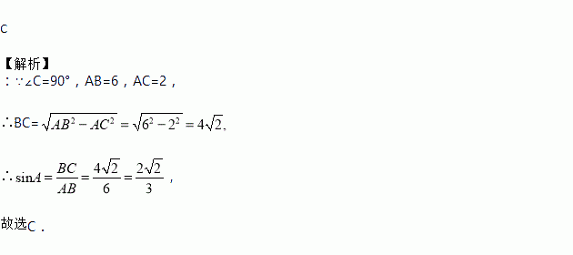 在Rt△ABC中,∠C=90°,AB=6,AC=2,则sinA的值为( )