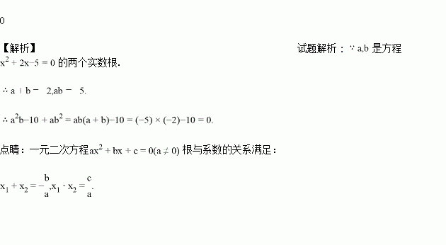 已知a,b是方程x2+2x﹣5=0的两个实数根,则a2b﹣10+ab2的值为______.