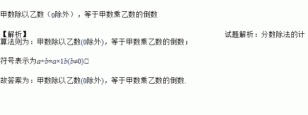 一位同学在学会用字母表示数后,借助符号正确的描述了有理数的除法法则:a÷b=a×(b≠0),请你用文字描述该法则________ .