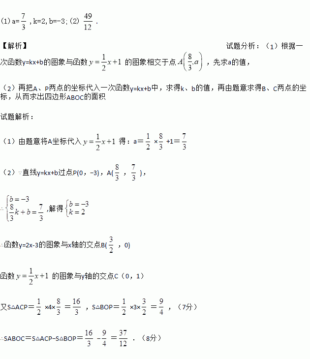 (2)若函数的图象与轴的交点是B,函数的图象与轴的交点是C,与x轴交于点D,求三角形ABD的面积(其中O为坐标原点).