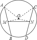 分析:连接OM,ON,OA,OC,由M、N分别为中点,利用垂径定理的逆定理得到OM垂直于AB,ON垂直于CD,由AM=CN,OA=OC,利用HL得出两直角三角形全等,可得出OM=ON,利用等边对等角得到一对角相等,再利用等式的性质即可得证.