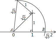 解答 解:如图所示:AB=$\sqrt{3}$cm.![]()