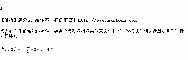 计算:﹣4cos45°+()﹣1+|﹣2|.
