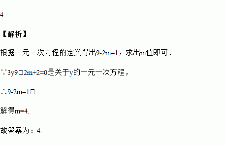 如果3y9﹣2m+2=0是关于y的一元一次方程,则m=________.
