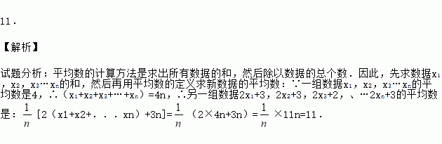 已知数据x1,x2,x3,…,xn的平均数为4,则数据2x1+3,2x2+3,2x3+3,…,2xn+3的平均数为 .