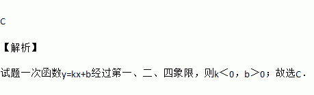A. k>0,b>0 B. k>0,b<0 C. k<0,b>0 D. k<0,b<0