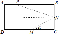 (2)根据图形的轴对称性质可知,△PBN∽△MCN,然后利用相似三角形的对应边成比例,将MC=n,∠CMN=α代入即可求出P点与B点的距离.