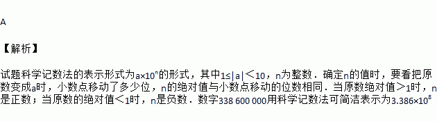 据报道,目前我国“天河二号”超级计算机的运算速度位居全球第一,其运算速度达到了每秒338 600 000亿次,数字338 600 000用科学记数法可简洁表示为( )