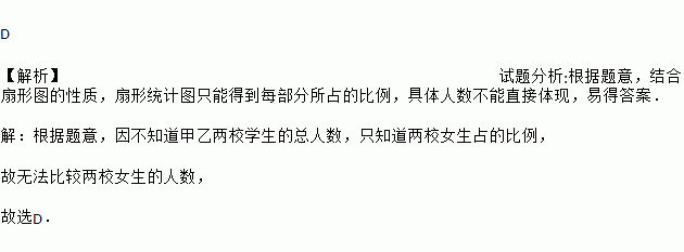 C. 甲、乙两校女生人数一样多 D. 无法确定