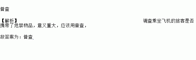 调查乘坐飞机的旅客是否携带了危禁物品, 这种调查适用____________.(填“普查”或者“抽样调查”)