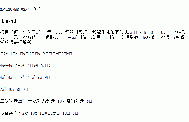 方程(2x﹣1)2﹣(x+2)(x﹣2)=(x+3)2化为一般形式是_____,其中二次项是_____,一次项系数_____,常数项_____