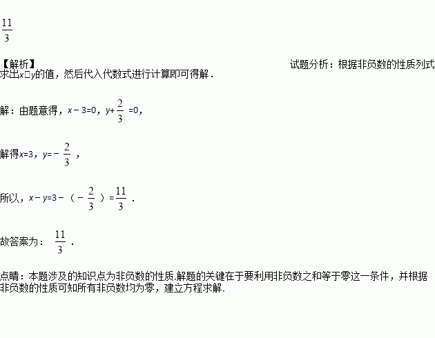 如果│x - 3│+(y +)2 = 0,那么x - y =_________.