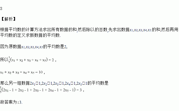已知一组数据x1,x2,x3,x4,x5的平均数是2,那么另一组数据2x1﹣1,2x2﹣1,2x3﹣1,2x4﹣1,2x5﹣1的平均数是_____.