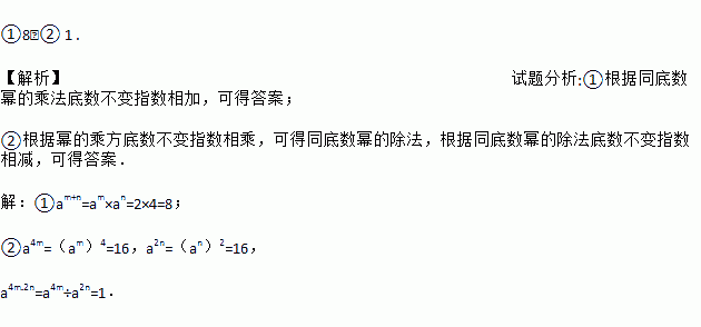 已知am=2,an=4,求①am+n的值;②a4m﹣2n的值.