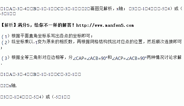 (3)若以点A、C、P为顶点的三角形与△ABC全等,直接写出所有符合条件的点P的坐标________.