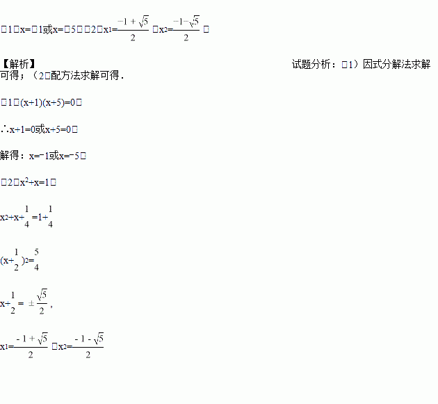 (1)x2+6x+5=0;(2)x2+x﹣1=0.(用配方法解)