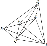 11.分析 首先连接DE、DF,由△CBF和△ABD是等边三角形,易证得△CBA≌△FBD(SAS),继而证得AC=DF,则可得DF=EC,同理可得DE=FC,则可判定四边形DECF是平行四边形,证得CD与EF互相平分.