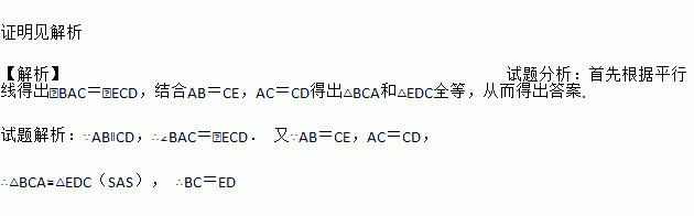 已知:如图,点E,A,C在同一直线上,AB∥CD,AB=CE,AC=CD.