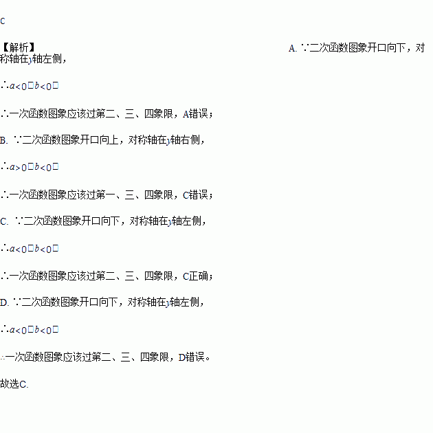 一次函数y=ax+b(a≠0)与二次函数y=ax2+bx+c(a≠0)在同一平面直角坐标系中的图象可能是( )