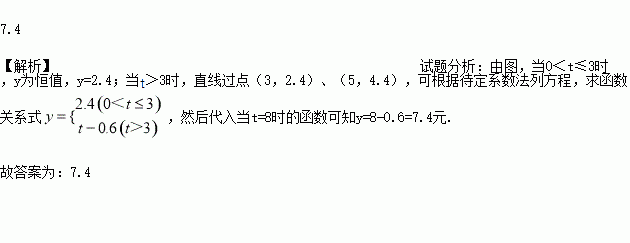 如图所示中的折线ABC为甲地向乙地打长途电话需付的电话费y(元)与通话时间t(分钟)之间的函数关系,则通话8分钟应付电话费________元.
