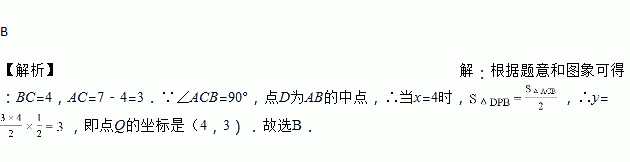 如图,在Rt△ABC中,∠ACB=90°,D为斜边AB的中点,动点P从B点出发,沿B→C→A运动,如图1所示,设S△DPB=y,点P运动的路程为x,若y与x之间的函数图象如图2所示,则图2中Q点坐标为( )
