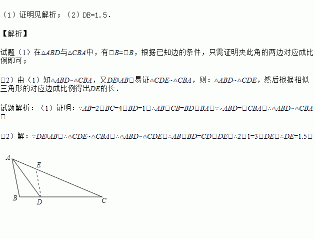 已知,如图,△ABC中,AB=2,BC=4,D为BC边上一点,BD=1.