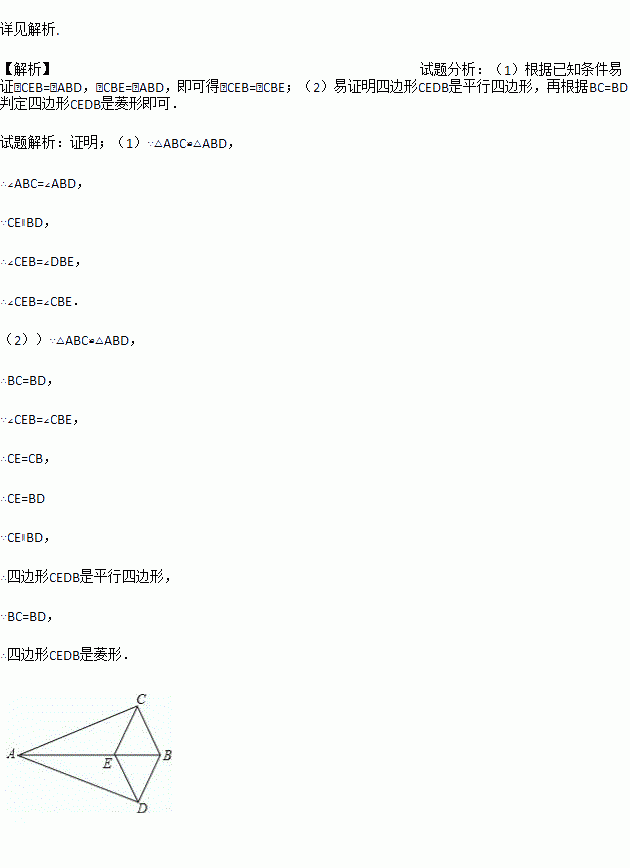 如图,△ABC≌△ABD,点E在边AB上,CE∥BD,连接DE.