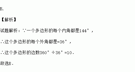 一个多边形的每个内角都是144°,这个多边形是( )