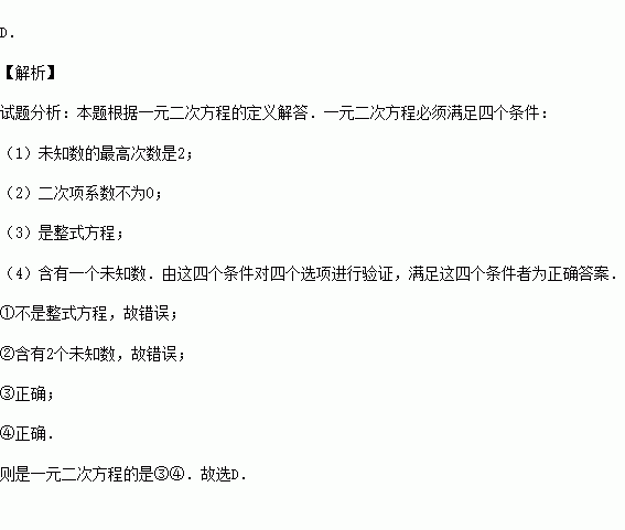 方程:①,②2x2﹣5xy+y2=0,③7x2+1=0,④中一元二次方程是( )