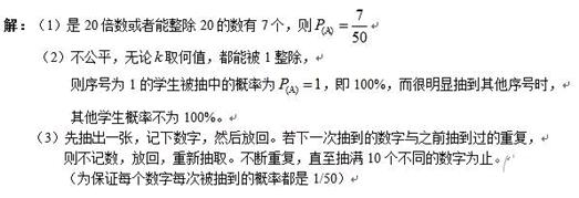 某班有50位学生,每位学生都有一个序号,将50张编有学生序号(从1号到50号)的卡片(除序号不同外其它均相同打乱顺序重新排列,从中任意抽取1张卡片
