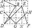 解:根据网格结构,∵∠DBM>45°,∠DFN=45°,∠ABM>∠FEN,