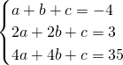 当x=1,x=2,x=4时,代数式ax+bx+c的值分别是-4,3,35,求a,b,c的值.