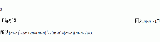 若m-n=-1,则(m-n)2-2m+2n==__________.