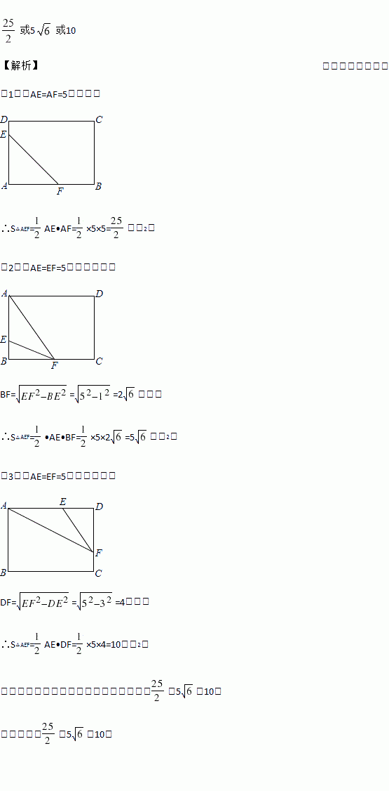 在一张长为8cm,宽为6cm的矩形纸片上,现要剪下一个腰长为5cm的等腰三角形(要求:等腰三角形的一个顶点与矩形的一个顶点重合,其余的两个顶点在矩形的边上).则剪下的等腰三角形的面积为________cm2。