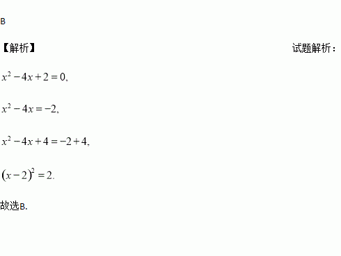 A. (x-2)2=6 B. (x-2)2=2 C. (x+2)2=6 D. (x+2)2=2