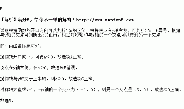 二次函数y=ax2+bx+c(a≠0)的图象如图所示,则下列结论中错误的是( )