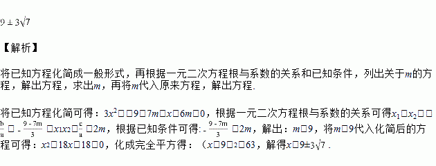 若关于的方程的两根之和与两根之积相等,则方程的根为________.